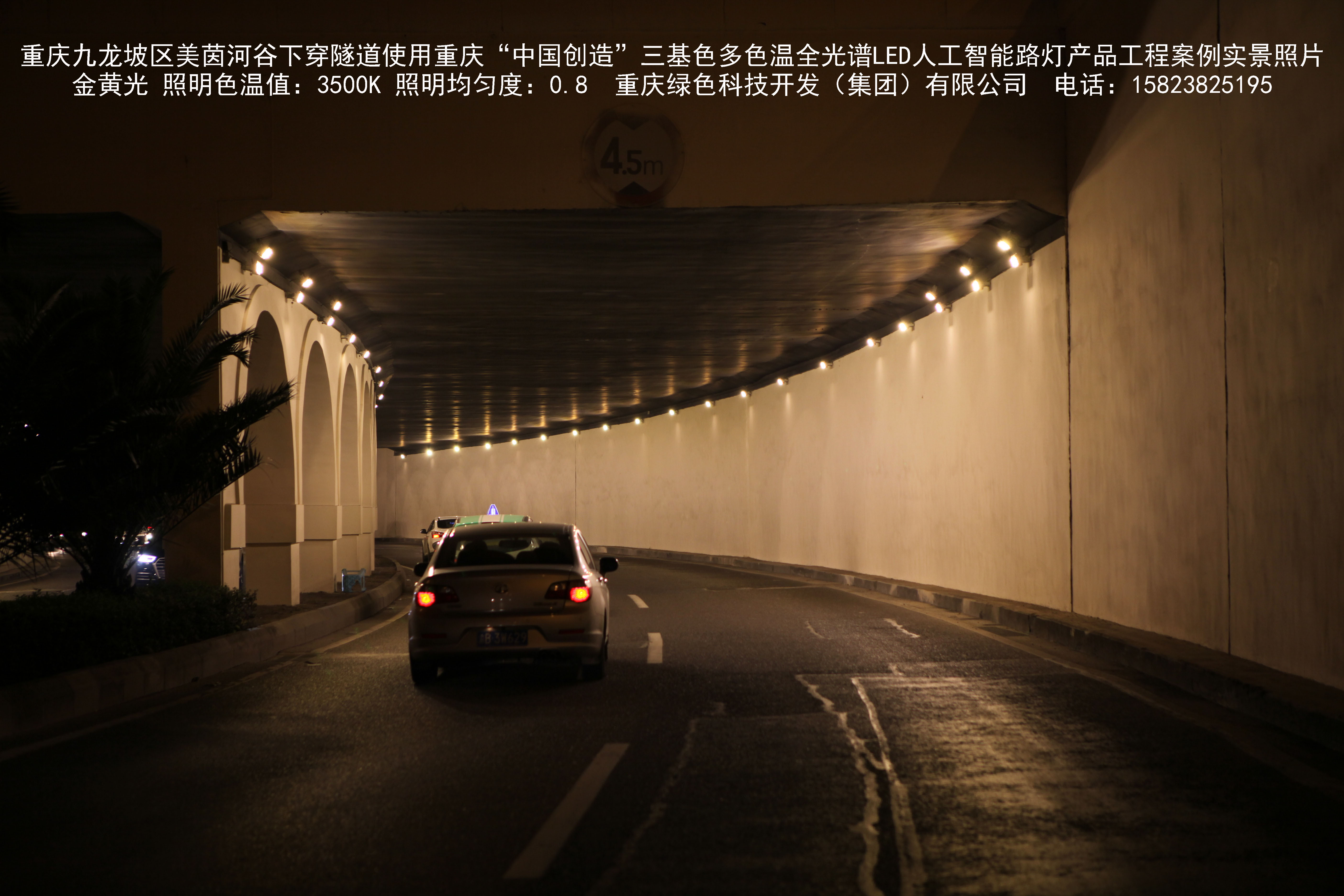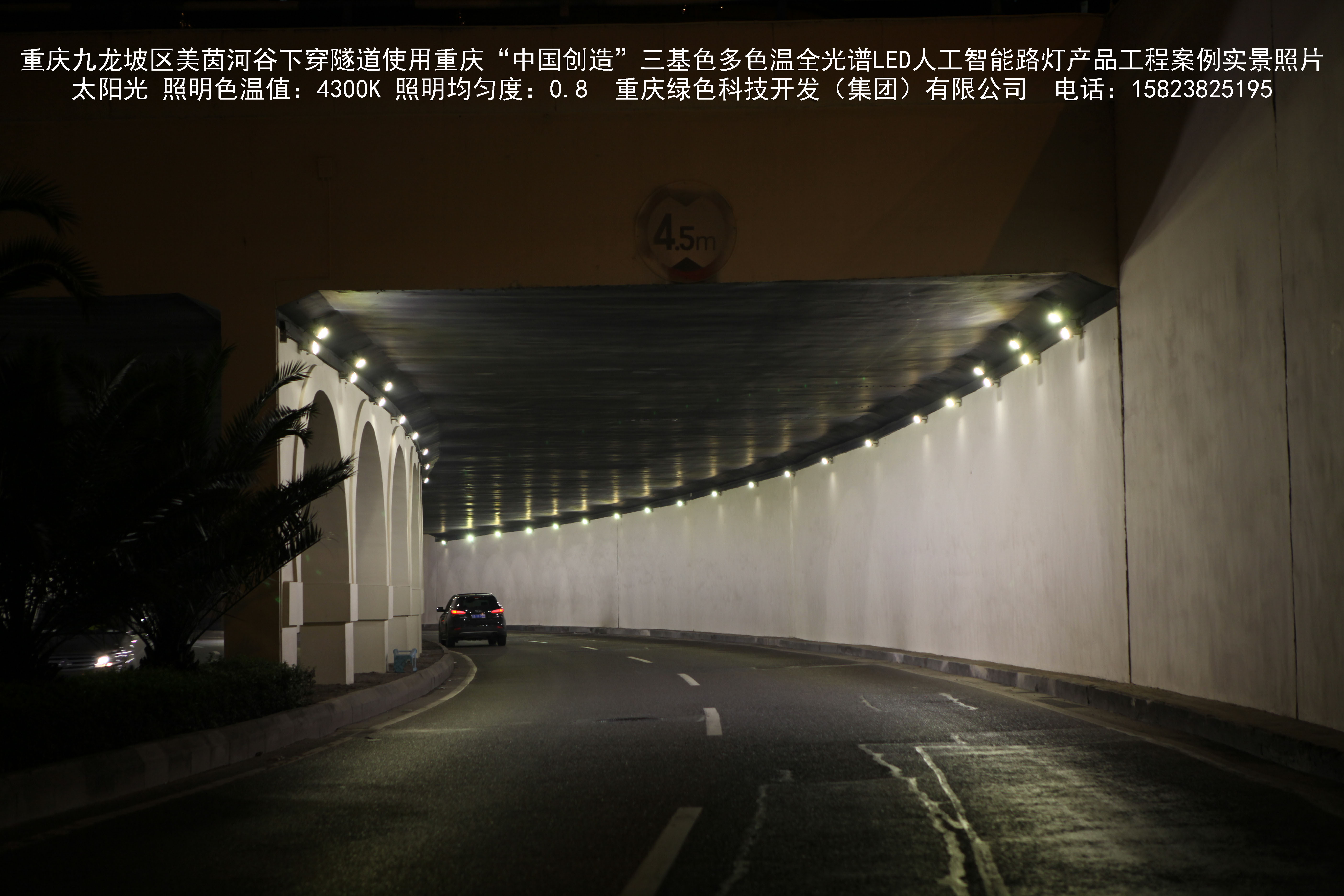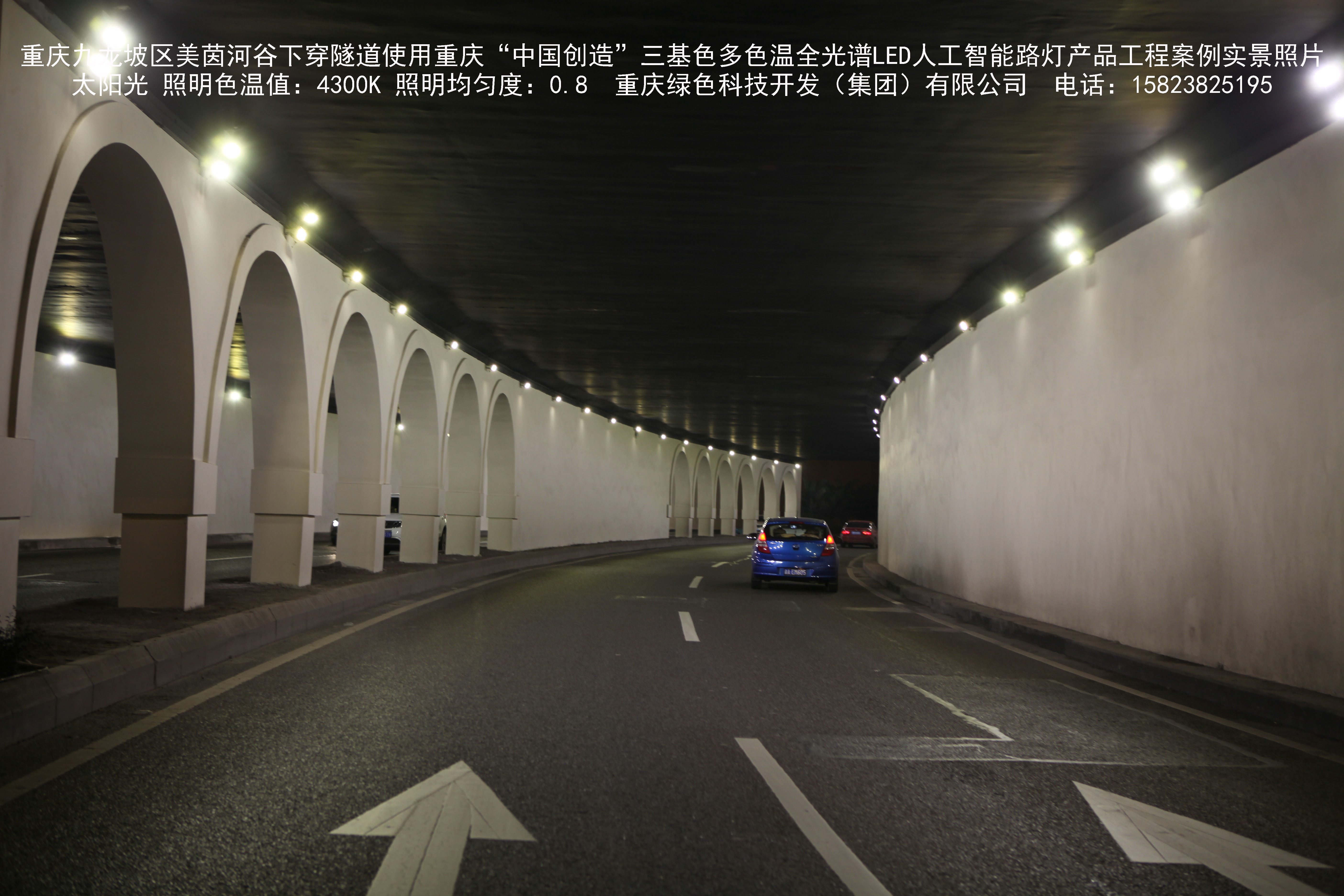 2018年9月,重慶市九龍坡區城市管理局使用我司自主研發(fā)制造的重慶“中國創(chuàng )造”三基色多色溫全光譜LED人工智能隧道燈系列產(chǎn)品,實(shí)施了美茵河谷下穿隧道市政設施品質(zhì)提升工程。該工程已全面竣工。工程實(shí)施后,極大地提高了城市照明清晰度、燈光均勻度、舒適度。通過(guò)智能終端實(shí)現單燈感知、線(xiàn)纜防盜報警,與原高壓鈉燈相比,節能率60%以上,有效解決了關(guān)閉控制回路或間隔關(guān)燈方式造成的照明暗區,確保行人和車(chē)輛通行的安全,實(shí)現城市路燈照明系統的智能化管理,推進(jìn)了智慧城市建設。