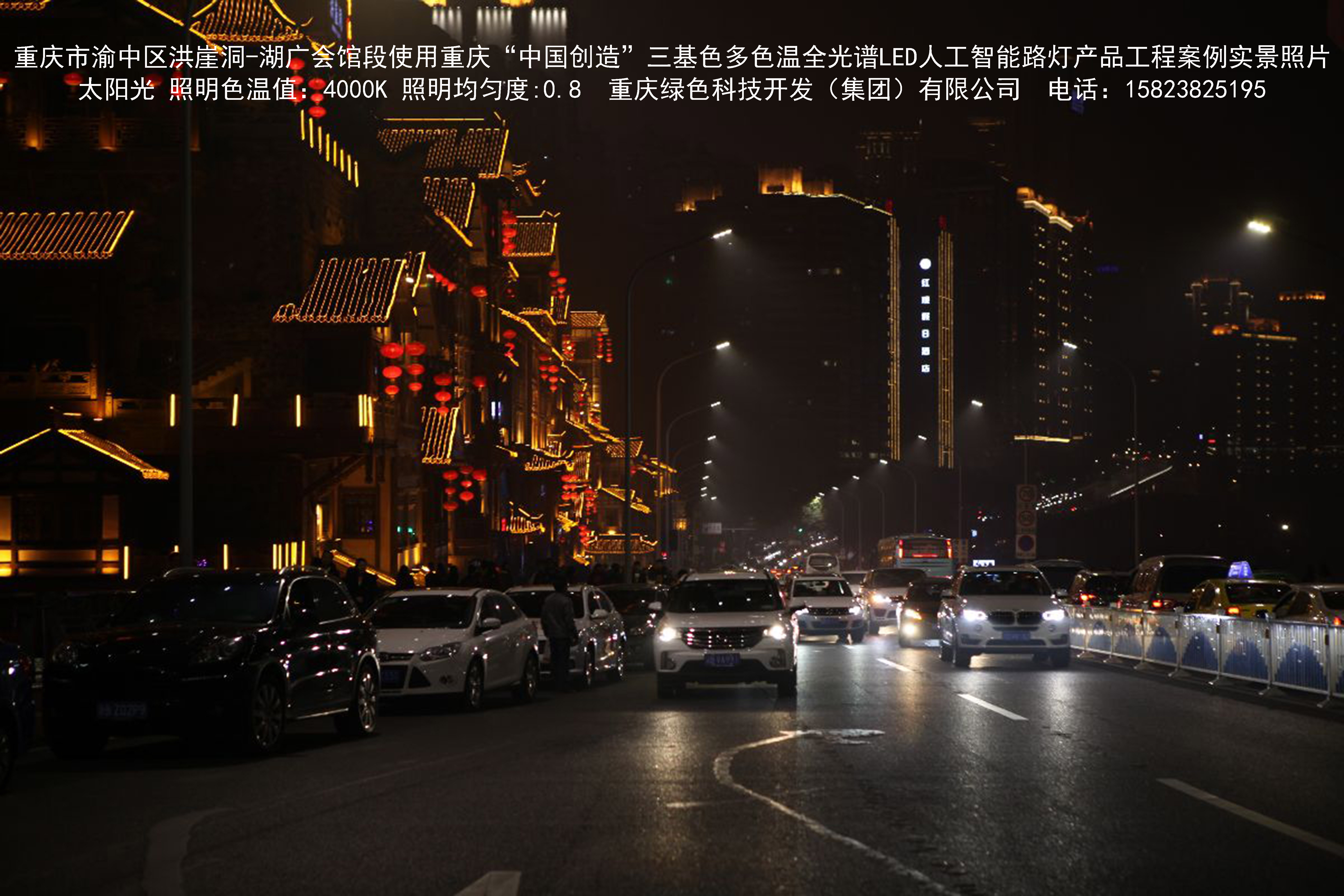 2018年12月,重慶市城市照明管理局使用我司自主研發(fā)制造的重慶“中國創(chuàng )造”三基色多色溫全光譜LED人工智能路燈系列產(chǎn)品,實(shí)施了渝中區市政設施品質(zhì)提升工程。該工程已全面竣工。工程實(shí)施后,極大地提高了城市照明清晰度、燈光均勻度、舒適度。通過(guò)智能終端實(shí)現單燈感知、線(xiàn)纜防盜報警,與原高壓鈉燈相比,節能率60%以上,有效解決了關(guān)閉控制回路或間隔關(guān)燈方式造成的照明暗區,確保行人和車(chē)輛通行的安全,實(shí)現城市路燈照明系統的智能化管理,推進(jìn)了智慧城市建設。