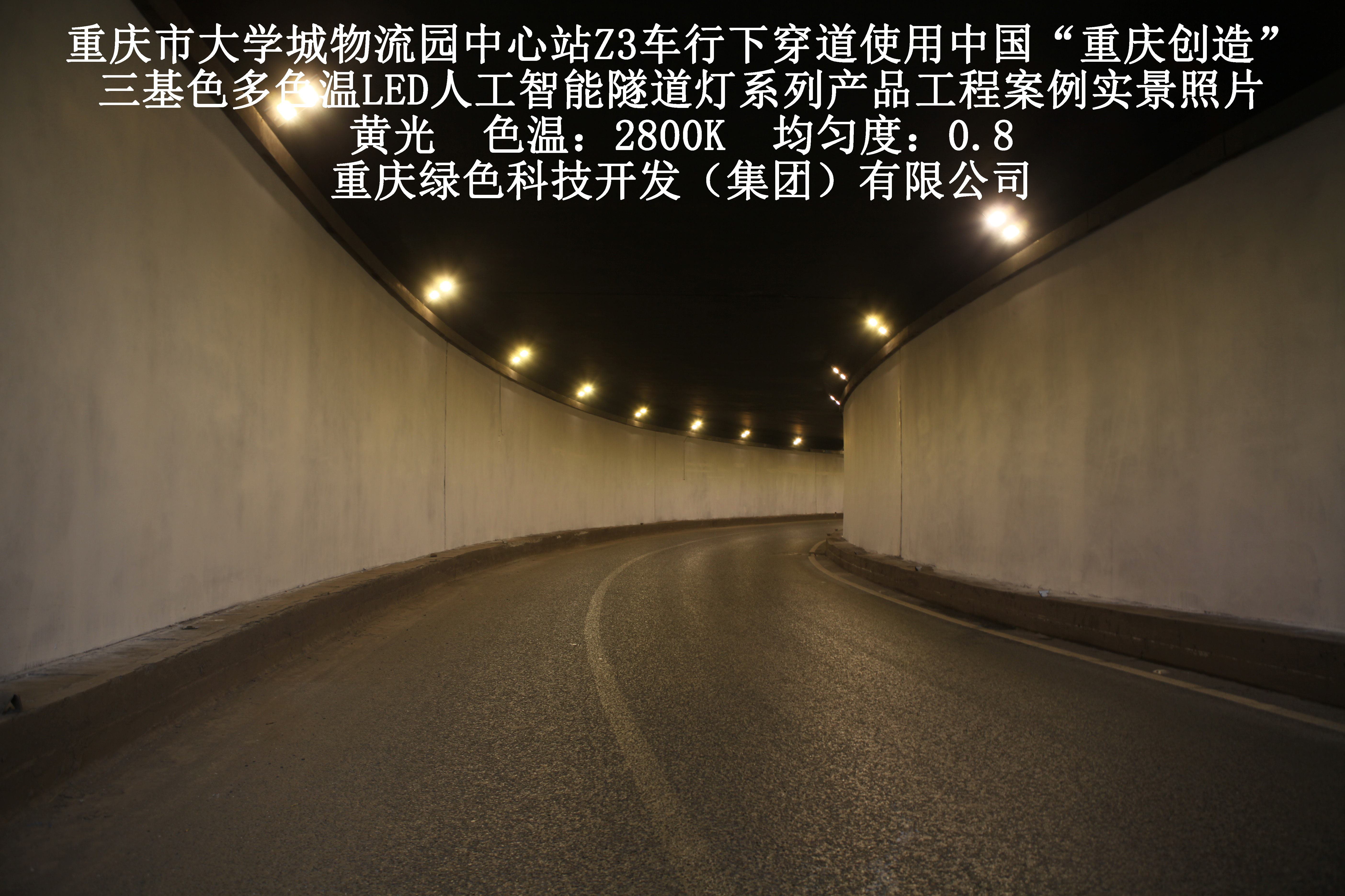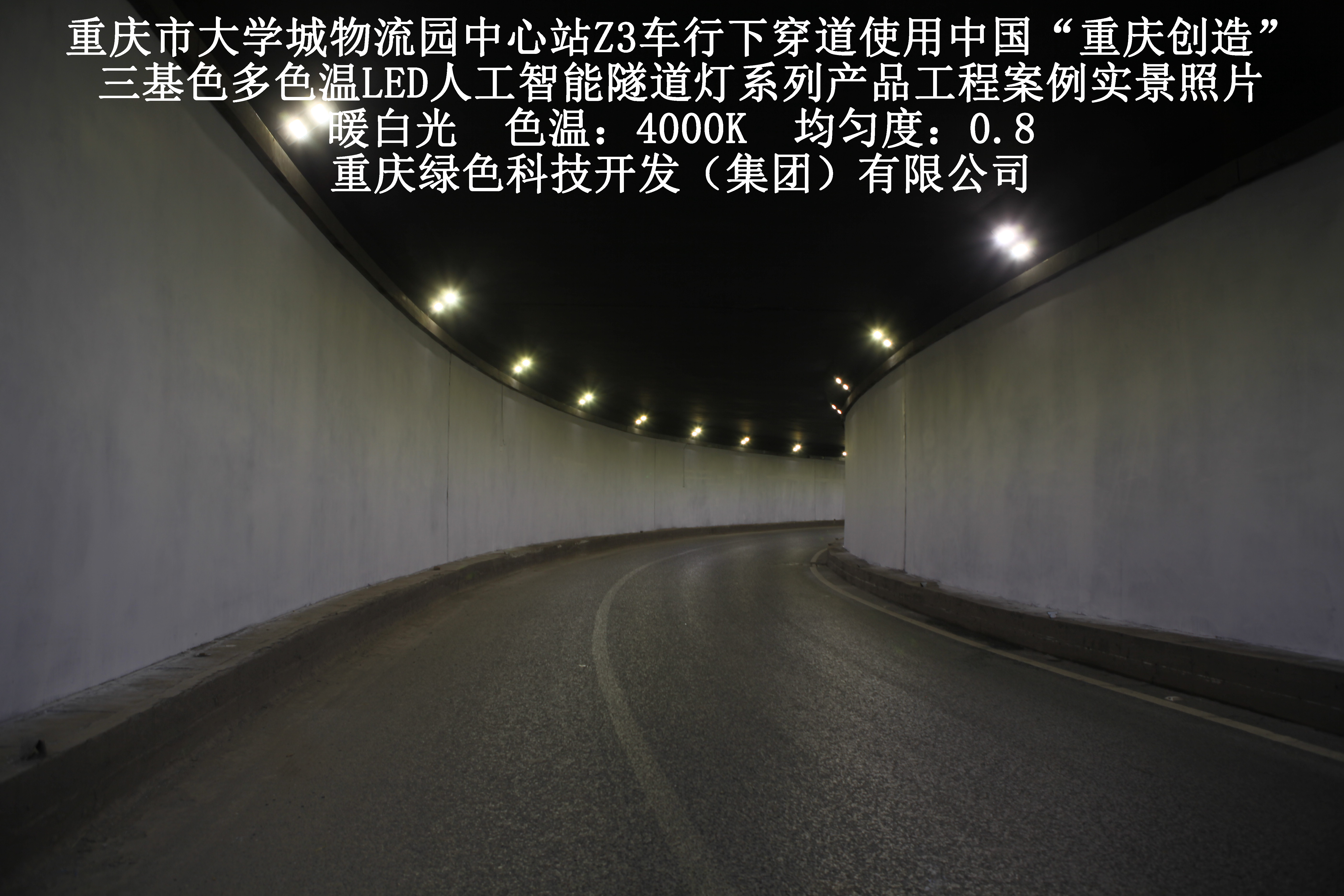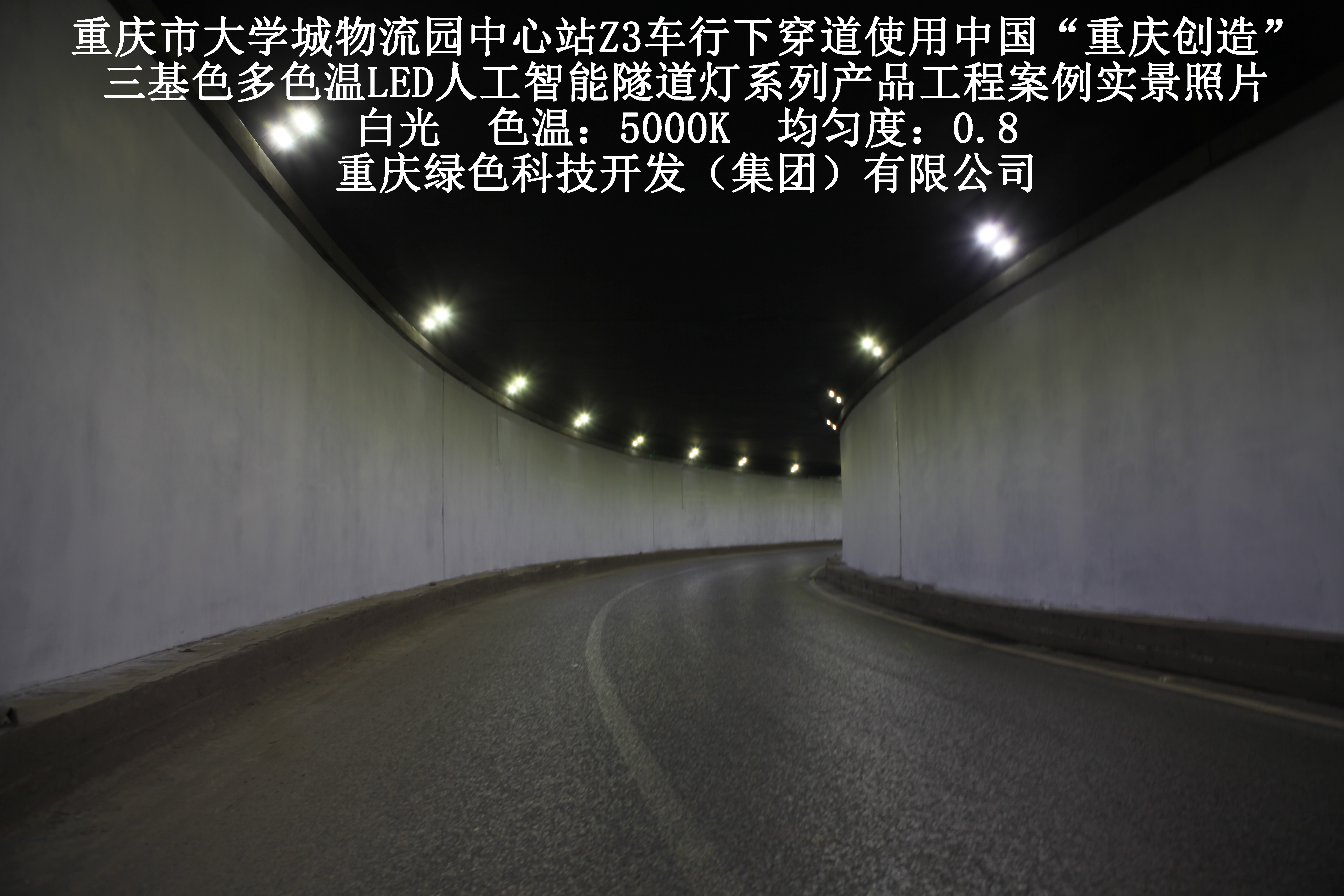 2019年3月,重慶市大學(xué)城物流園中心站Z3車(chē)行下穿道使用我司自主研發(fā)制造的,重慶“中國創(chuàng )造”三基色多色溫LED人工智能隧道燈系列產(chǎn)品,實(shí)施了市政設施品質(zhì)提升工程(工程案例實(shí)景照片附后)。此項目的實(shí)施,極大地提高了隧道內照明清晰度、燈光均勻度、舒適度及照明安全性,實(shí)現了隧道照明系統的智能化管理。