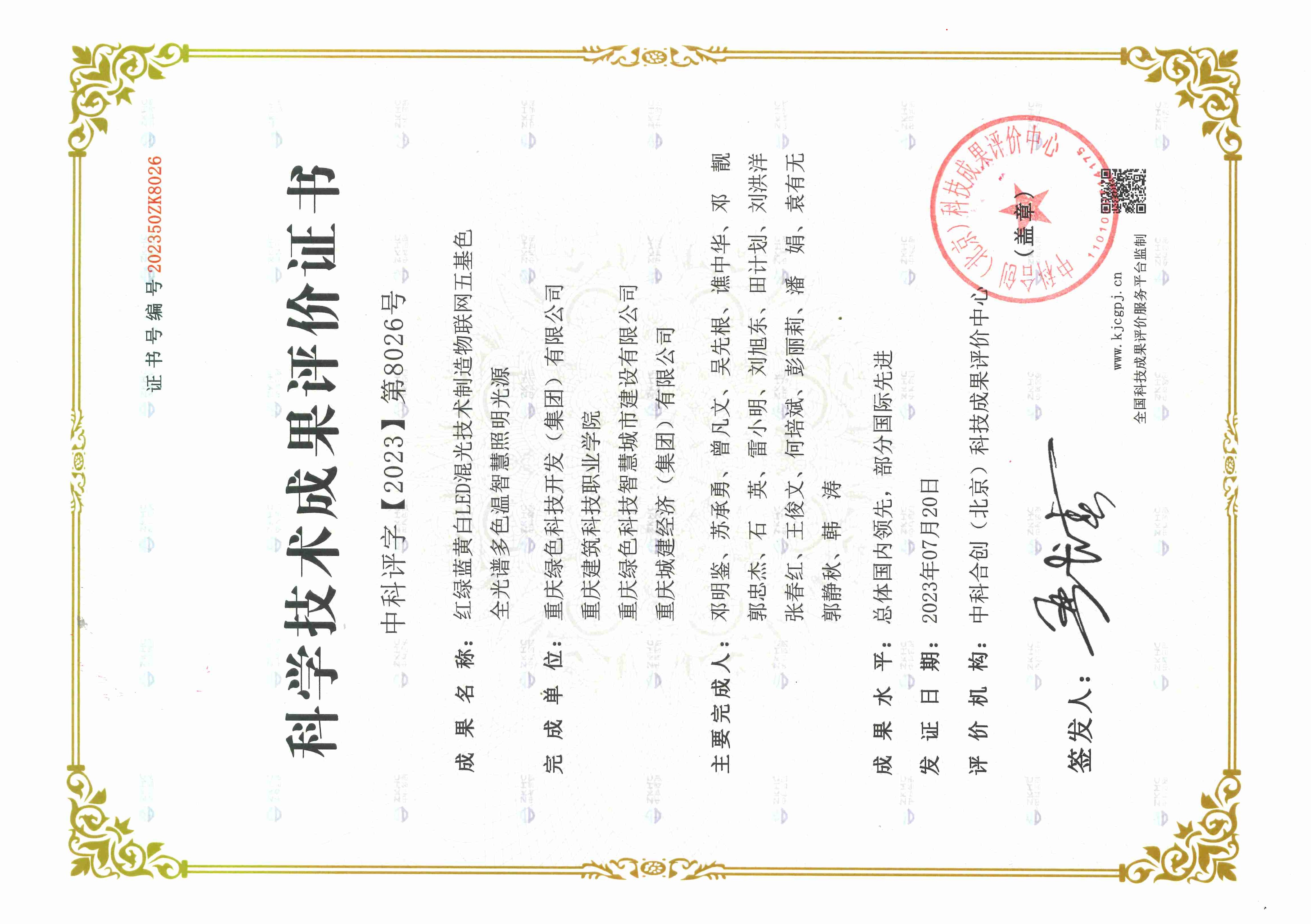 2023年7月11日,中科合創(chuàng )(北京)科技成果評價(jià)中心組織專(zhuān)家,在北京對我司“紅綠藍黃白LED混光技術(shù)制造物聯(lián)網(wǎng)五基色全光譜多色溫智慧照明光源”項目進(jìn)行了科技成果評價(jià)。